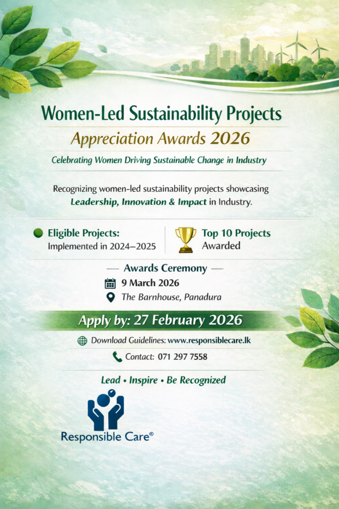 In celebration of International Women’s Day 2026, the Lanka Responsible Care Council (LRCC) is pleased to invite applications for the Women-Led Sustainability Projects Appreciation Awards 2026. This initiative recognizes women professionals who have led impactful sustainability, EHS, and safe chemicals management projects within their organizations during 2024–2025.
